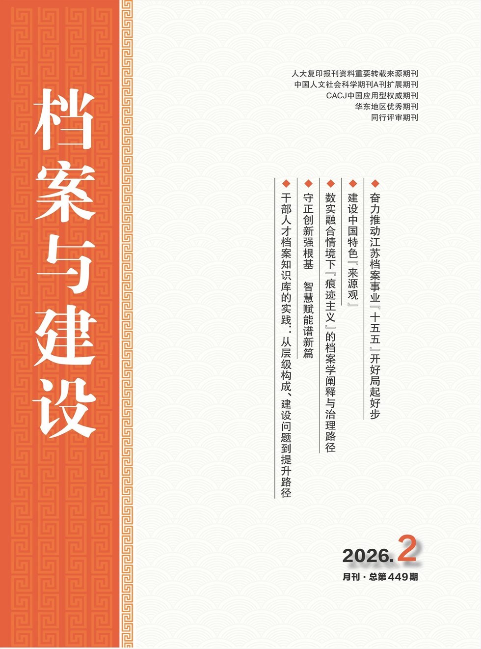 《档案与建设》(月刊)创刊于1984年,由江苏省档案局和江苏省档案学会主办,学术性、指导性、史料性兼容,国内外公开发行;《档案与建设》立足档案专业,面向社会各界,热诚欢迎赐稿、赐教。荣获华东地区优秀期刊;学术园地获明珠奖栏目。