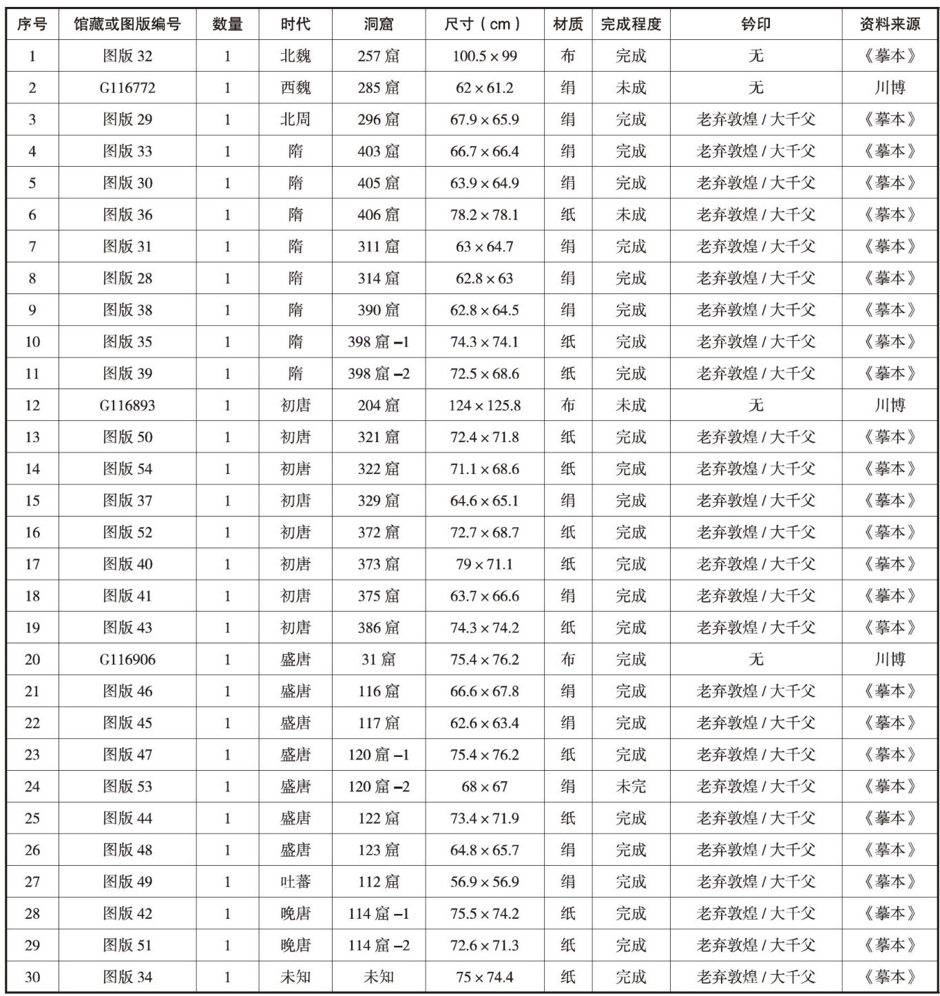 [摘要]张大千在敦煌临摹壁画时对图案纹样和人物应该是同等重视的。他在临摹过程中,对图案纹样中人物元素的取舍、临摹尺寸的统一、色彩的选择、构图的把控等细节都说明其此次敦煌之行是具有系统性和规划性的。