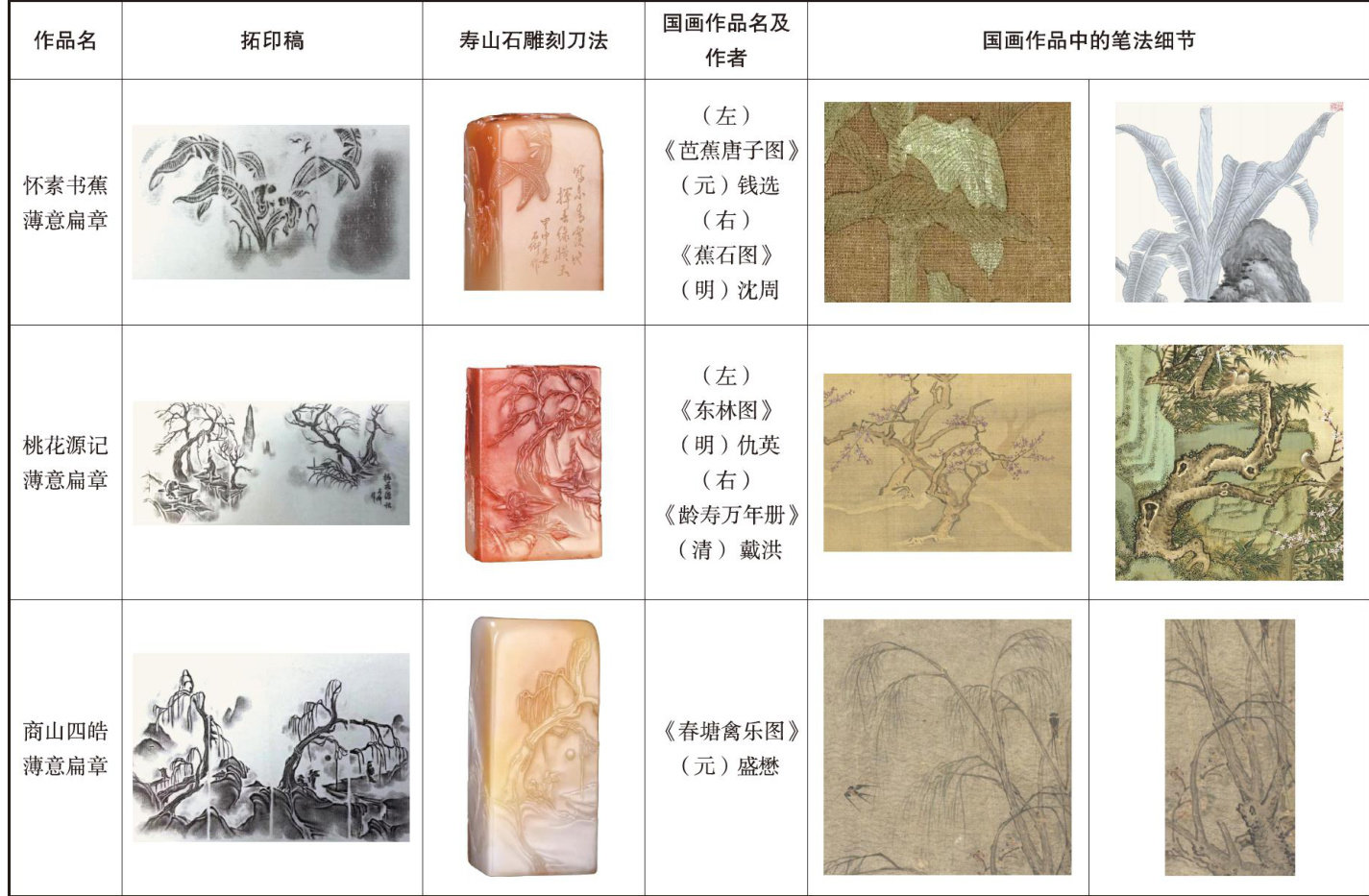 [摘要]郭懋介的寿山石作品在前人基础上做出了创新,既拓展了寿山石雕刻内容与技法的表现,又升华了寿山石雕刻的审美内涵。他在寿山石雕刻领域实现了雕刻与国画两种不同媒材之间的转译,在作品中表现了对文人精神境界的追求。传统寿山石雕工艺转译中国绘画的诸般表现并非直接移植,郭懋介主要从石料的选择及书画材质转译、寿山石雕刻的刀法表现与笔法转译、图像的选取提炼及书画转译、书画精神在寿山石雕上的转译等方面进行尝试和拓展。
