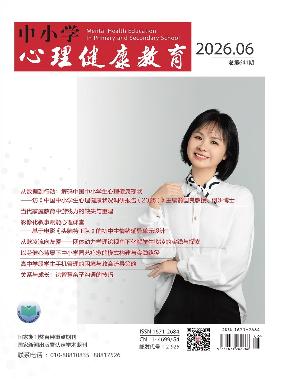 《中小学心理健康教育》杂志为半月刊,创刊于2001年7月,每月1日和15日出版。《中小学心理健康教育》由中国民主促进会中央委员会主管、开明出版社主办,是国内第一本专门以中小学心理健康教育为内容的专业性杂志。2005年1月,荣获国家新闻出版总署第三届国家期刊奖百种重点期刊。