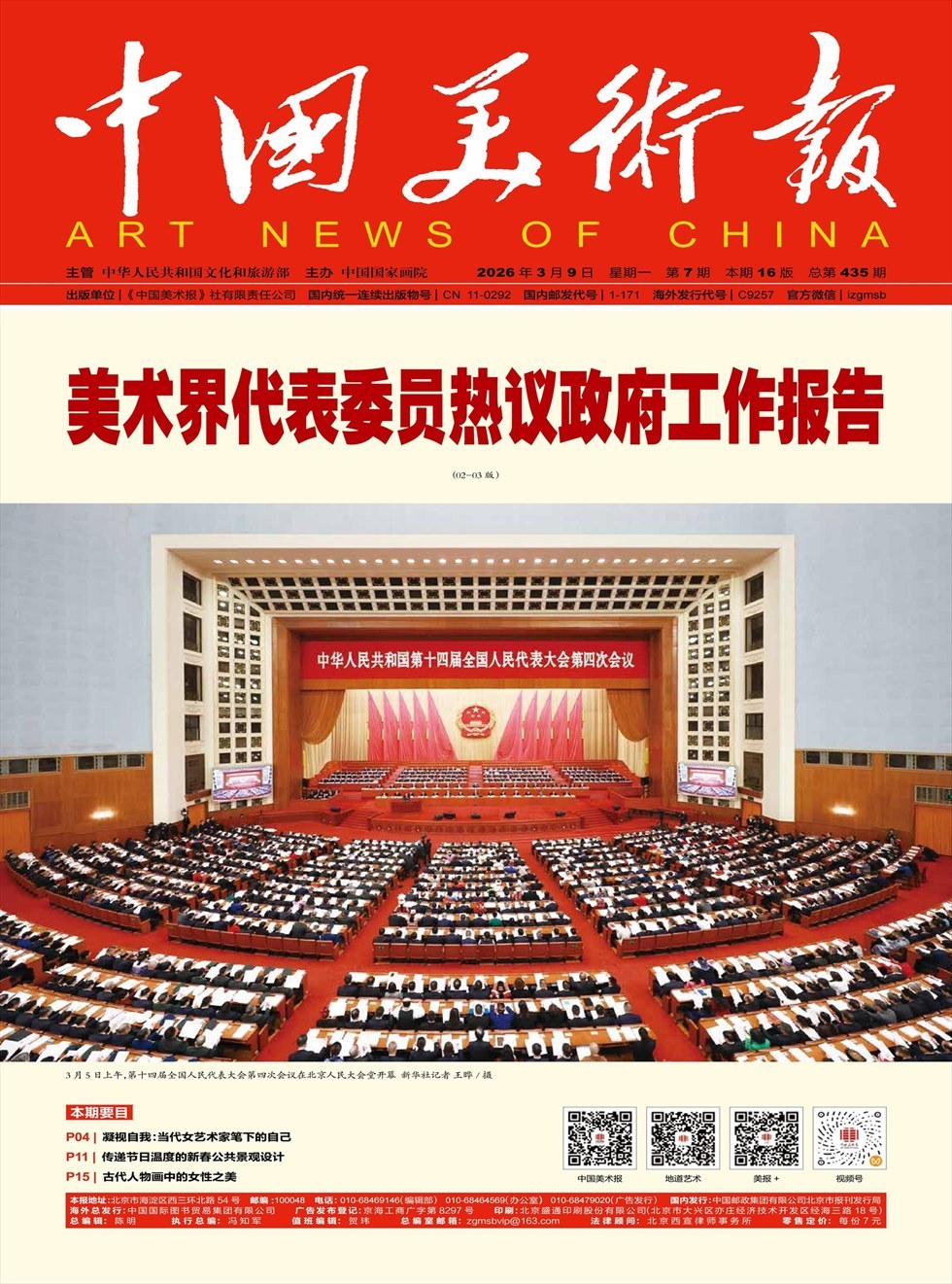 《中国美术报》成立于2015年12月26日,是文化和旅游部主管、中国国家画院主办的国家级美术专业媒体。2015年1月,由国家新闻出版广电总局批准创办,2016年1月正式出版。报纸的国内统一连续出版物号为CN11--0292,国内邮发代号为1-171,海外发行代号为C9257,篇幅为4开20版,彩色胶印周报,逢周一出版。