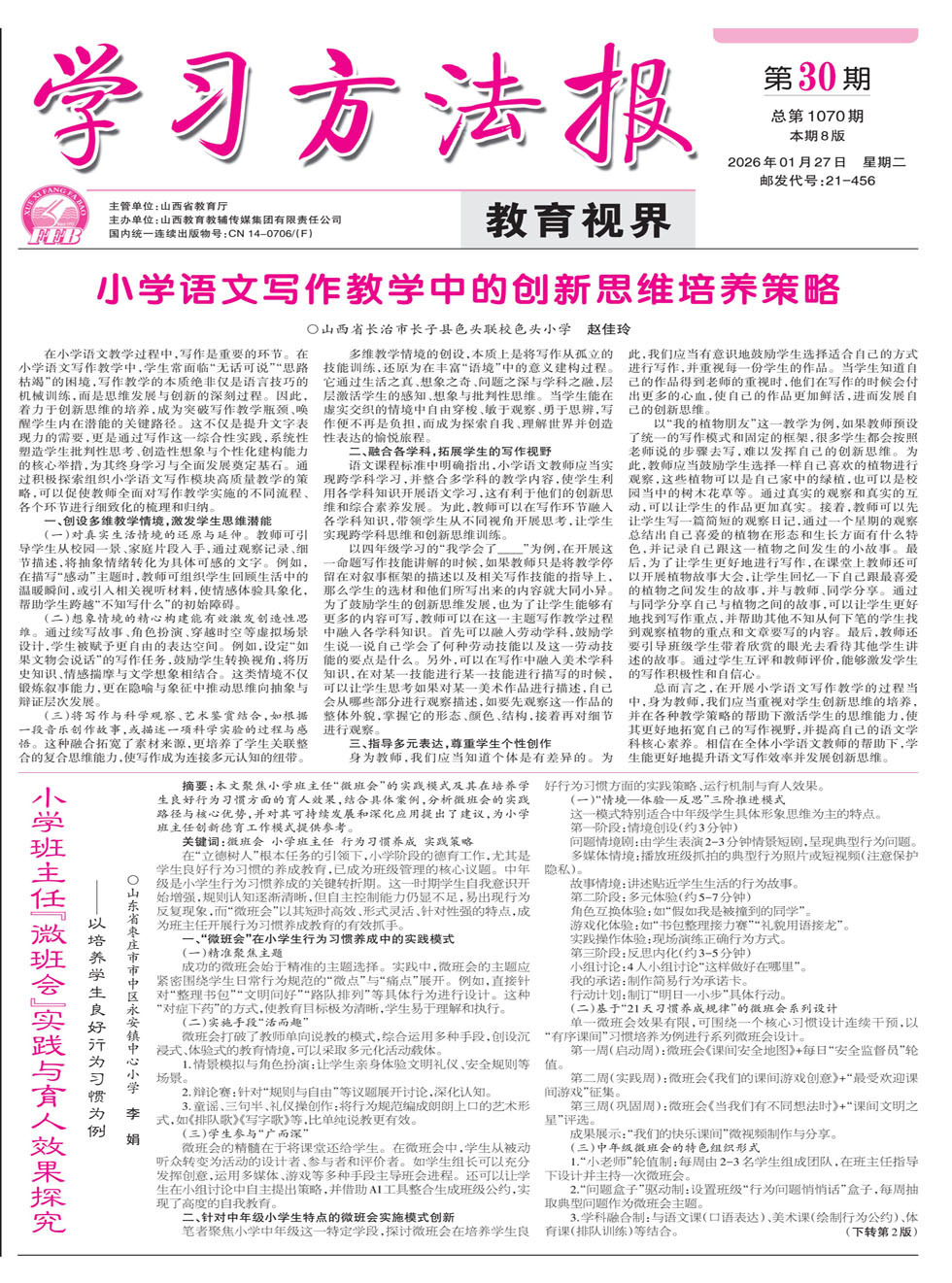 封面文章 | 小学语文写作教学中的创新思维培养策略