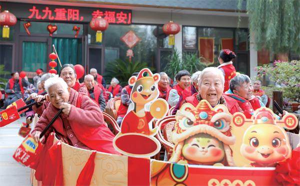 2025年10月28日,在河南省武陟县木城街道木城养老院,老人们参加 “重阳节趣味划船”活动 2023年,中央金融工作会议提出“要着力做好科技金融、绿色金融、普惠金融、养老金融、数字金融‘五篇大文章’”,为紧扣金融高质量发展这一主题、推进相关金融工作指明了方向。《中共中央关于制定国民经济和社会发展第十五个五年规划的建议》中“加快发展多层次、多支柱养老保险体系”的部署,进一步为养老金融的创新