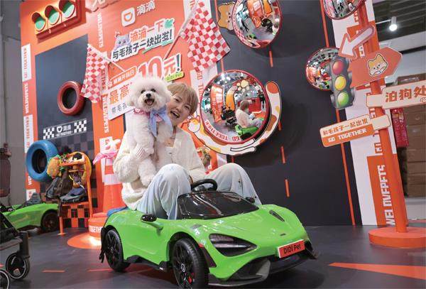 2025年5月8日,第五届TOPS它博会宠物展在国家会展中心(上海)开幕。图为一名参观者带着她的小狗在宠物出行展台上乘坐玩具车(方喆 / 摄) 辽宁鞍山宠都汇的宠物电商实训基地里,主播们正热情地向全国网友展示猫咪用品,货架上的繁育专用粮、智能宠物项圈等商品被陆续下单。 在今年9月16日举办的这次直播现场,忙碌的主播们旁,多了一位特殊的访客——鞍山市市长吴开华正仔细观摩带货进展,并向周围人详细了