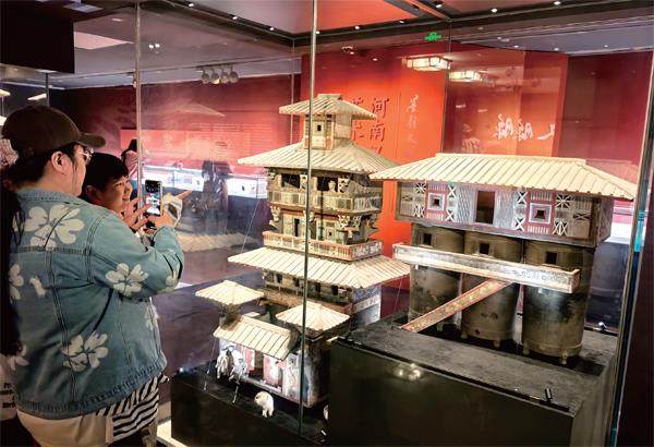 2025年10月8日,北京,中国美术馆,观众在“墨韵文脉——河南汉唐艺术珍品展”上观展 中原——从来都是一个分量千钧的大词,每当这两个字脱口而出,纵有万古、横有八荒的气势和力道便扑面而来,让人忍不住探寻,这气势里究竟积淀了多少历史的浓度,凝结了多少文明的温度。 既便捷又直观的方式,就是从文物的吉光片羽里寻找线索。近期,由中国美术馆与河南省文物局联合主办的“墨韵文脉——河南汉唐艺术珍品展”