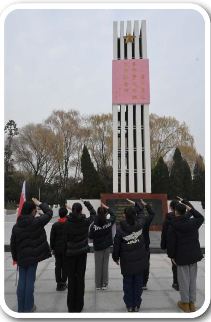 2025年是中国人民抗日战争暨世界反法西斯战争胜利80周年,为了增强少先队员的爱国情怀,传承和弘扬伟大抗战精神,盐城市第一小学开展了丰富的学习、实践活动。赖传珠英雄中队的队员们在辅导员的带领下,来到华中鲁艺烈士陵园,开展寻访活动。 华中鲁艺烈士陵园坐落在,是为了纪念在庆丰镇北秦庄抗日殉难的鲁迅艺术学院华中分院二队的烈士而建。陵园的正中矗立着一座13米高的纪念碑,其西侧建有烈士纪念馆,馆内分别用文