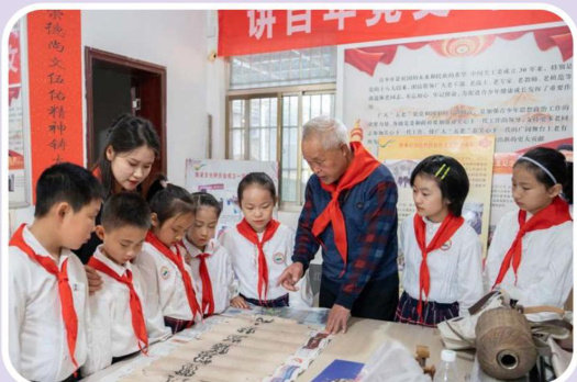 寻访背景 2025年是中国人民抗日战争暨世界反法西斯战争胜利80周年,也是黄桥决战胜利85周年。黄桥小学教育集团新城分校薪火中队的少先队员们怀着崇敬之情,踏上寻访和的征程,开启了一场以“寻红色旧址,访乡村振兴”为主题的红色探秘之旅。 红色严徐村 队员们的第一站是。斑驳的青砖墙、泛黄的老照片、陈列柜中的军用水壶和草鞋这些珍贵的文物将队员们带回到那段烽火岁月。队员们了解到:1940年黄桥决战期间