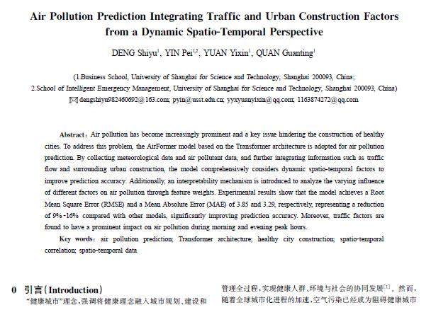 摘 要:空气污染问题日益突出,已经成为阻碍健康城市建设的关键问题。为解决这一问题,采用基于Transformer架构的空气污染预测模型AirFormer,通过采集气象数据、空气污染物数据,并在此基础上融合交通流量和周边城建等信息,综合考虑时空动态变化因素,以提高预测的准确性。同时引入可解释性机制,通过特征权重进一步分析不同因素对空气污染的影响变化规律。实验结果表明,模型的均方根误差(RMSE)和平