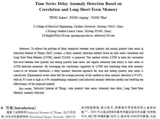 摘 要:针对工业物联网(IIoT)系统中,状态量和模拟量时间序列之间存在的时延异常问题,提出了一种基于时间序列相关性和长短期记忆(LSTM)的时延异常检测方法,即CLDAD。使用LSTM来学习状态量和模拟量时间序列之间存在相关性,把时间序列中的非正常时间延迟看成LSTM 异常情况。通过LSTM 支持的相关性,结合异常分数来设置动态阈值,构建状态量和模拟量时间序列的时延异常检测方法。实验结果表明,该