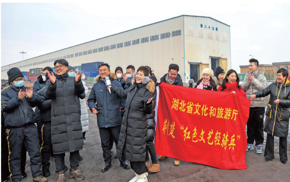 在祖国西部边疆,雪域高原与天山南北共同见证着一段跨越山河的文化情缘。由湖北省文化活动策划中心组织实施的湖北省文化和旅游厅荆楚“红色文艺轻骑兵”,以文艺为犁,以真情为桥,深耕民族团结沃土,连接湖北与西藏山南、新疆博州手足之情。 从零下30摄氏度的阿拉山口到海拔5000米的雪域边关,近五年湖北省文化活动策划中心开展文化惠民边疆之行30余场,惠及线上线下观众近10万人,让“雪域天山映荆楚,红色轻骑