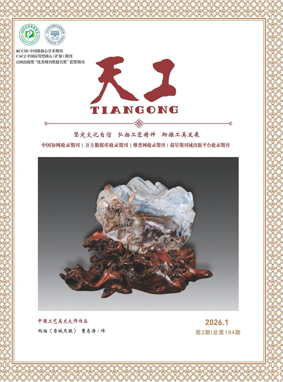 《天工》杂志以传播工艺美术文化为核心,以轻松的笔调讲述工艺美术美的历程。知识性、情感性、可读性并重。儒雅而时尚、明丽而清新、高端而大气是我们追求的风格。