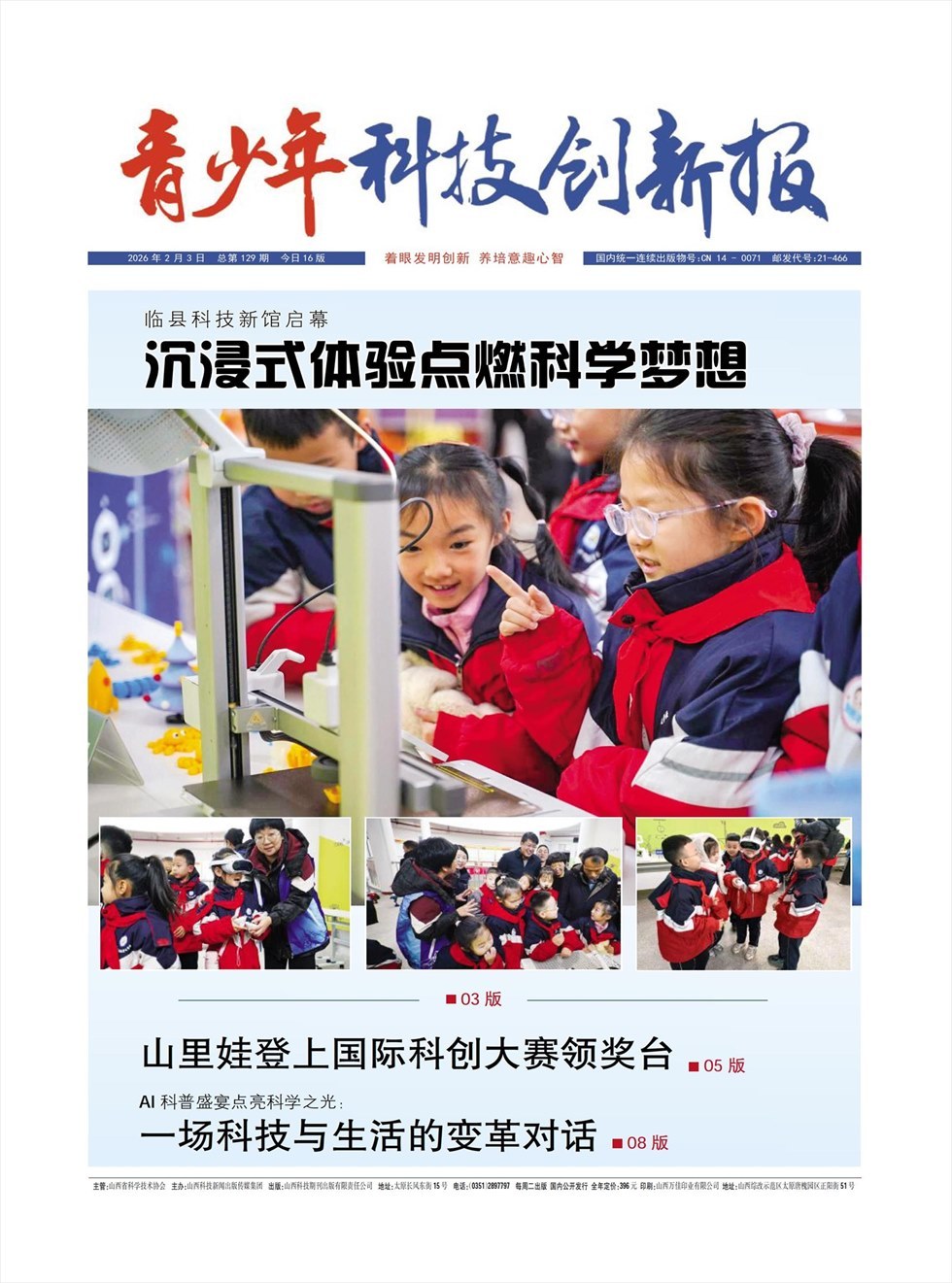 《青少年科技创新报》是一张面向青少年读者的科普类新闻报纸,由山西省科学技术协会主管,山西科技新闻出版传媒集团主办。报纸的宗旨是:着眼发明创新,养培意趣心智。《青少年科技创新报》的前身是《瓜果蔬菜报》。2023年2月,经国家新闻出版署批复,正式更名为《青少年科技创新报》。